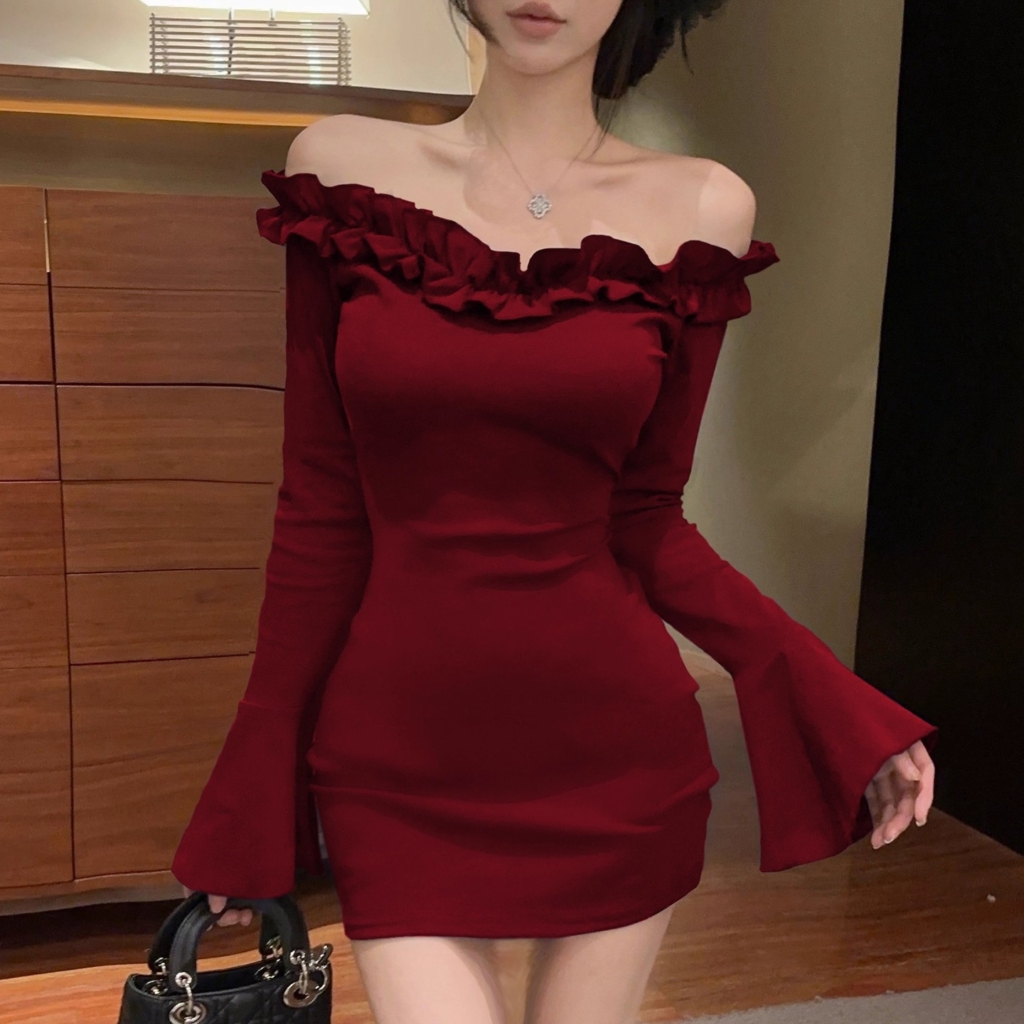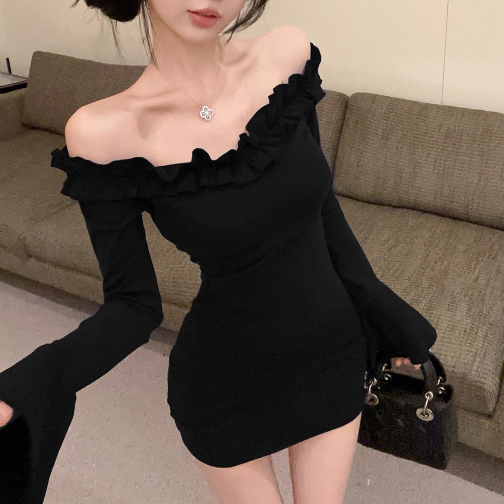 這款 2025 爆款一字肩包臀洋裝,是今年純欲甜辣風不可或缺的代表款 ✨。使用彈力涤纶布料,不僅擁有極佳延展性,貼身穿也不緊繃,能完美貼合身體線條,展現柔美又性感的曲線感 💕。布料順滑親膚,長袖也不悶熱,四季都能輕鬆駕馭。領口採用浪漫花邊設計,搭配大露肩的一字領,讓鎖骨、肩線更立體迷人,甜美與性感一次到位 🎀。喇叭袖更是增添整體設計亮點,袖口隨行動微微擺動,有種仙氣飄飄的氛圍,同時修飾手臂線條,非常適合想穿顯瘦款的女孩。包臀短裙更是這件洋裝的靈魂,貼合曲線卻不緊繃,從視覺上大大拉長腿部比例,小個子穿也能輕鬆駕馭,打造俐落又高挑的身形效果 ✨。裙長不過短、不會不方便,是性感但非常實穿的長度。三色各有魅力:酒紅色 → 氣場強、性感高級,聚會必勝色 🍷黑色 → 顯瘦、百搭、神祕感滿分 🖤藏青色 → 低調氣質,優雅又迷人 💙S~XL 的寬範圍尺寸讓不同身形女孩都能穿得剛剛好,是一件從約會、生日聚會、派對到外拍都能完美駕馭的高顏值洋裝 👑。如果你想找一件能甜、能辣、能仙、又能超顯瘦的短裙洋裝,這件真的會讓你一穿就上癮 🔥✨ 尺寸 S, M, L, XL 顏色 酒紅色, 黑色, 藏青色