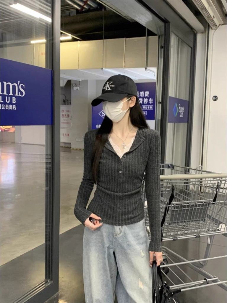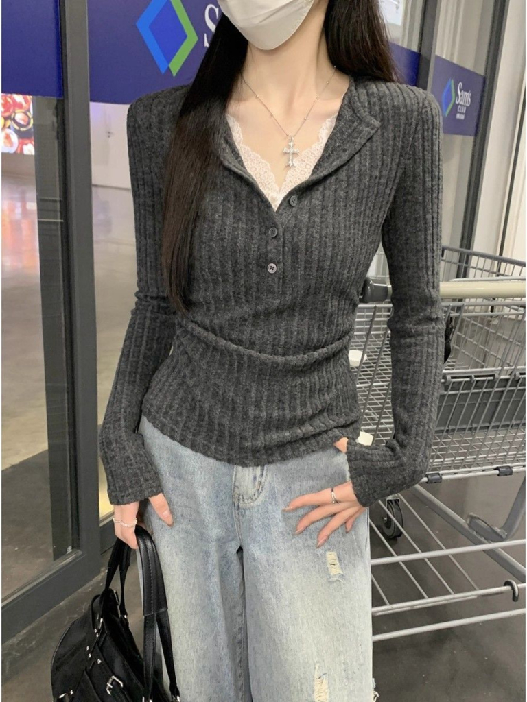 這款秋冬新款灰色蕾絲拼接V領針織上衣,以柔軟聚酯纖維打造輕盈又親膚的質地,穿起來舒適不刺膚,是寒冷季節裡非常實穿的時尚內搭。柔灰色展現冷調高級感,搭上細緻蕾絲拼接V領,視覺上多了一份浪漫與純欲氛圍,不會過度華麗,反而呈現剛剛好的優雅。✨修身版型能自然貼合身形,顯瘦效果明顯,外搭大衣、西外、皮衣或針織外套都能呈現不同風格。單穿內搭都好看,是秋冬衣櫃裡非常實用又耐看的單品。V領微開的線條能修飾臉型與鎖骨,氣質和比例都更好。💎尺寸提供 S 到 XL,友善不同身形,不挑年齡、不挑搭配情境。從日常休閒、通勤上班,到約會聚餐都能輕鬆駕馭。售價 499 元,兼具質感與高CP值,是秋冬必收的百搭上衣。🧶 尺寸 S, M, L, XL